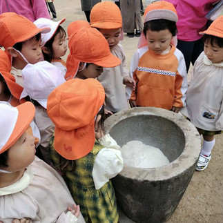 そして、本日、年長児のみとなりましたが、保育参観を兼ねて餅つきを行いました。